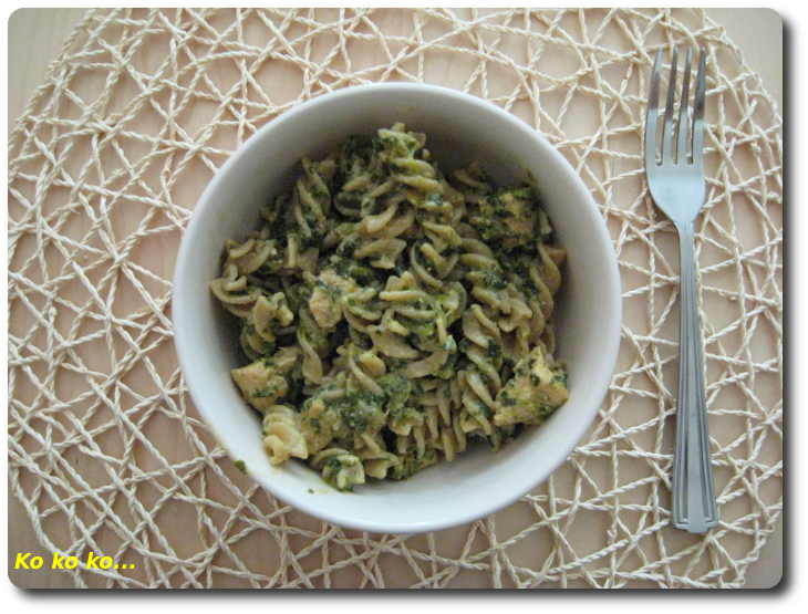 Na końcu łączymy usmażonego kurczaka gyrosowego ze szpinakiem w sosie serowym i gotujemy jeszcze przez kilka minut. W tym momencie można wstawić wodę na makaron pełnoziarnisty, natomiast fani kaszy powinni wstawić wodę na kaszę zaraz po wyjęciu szpinaku z zamrażarki. Makaron lub kaszę podajemy z połową sosu, zaś resztę można zamrozić na kiedy indziej.